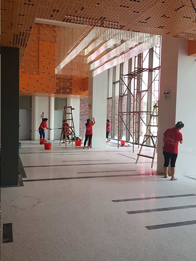 7月天天洗衣位于廣州增城的新總部大樓竣工,好亮堂保潔公司承接其開荒保潔項(xiàng)目。