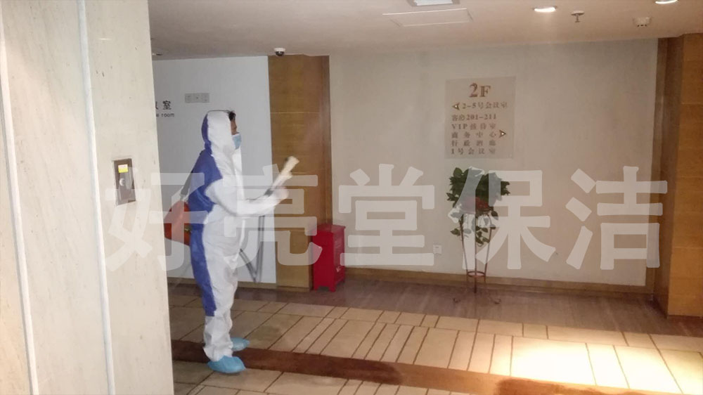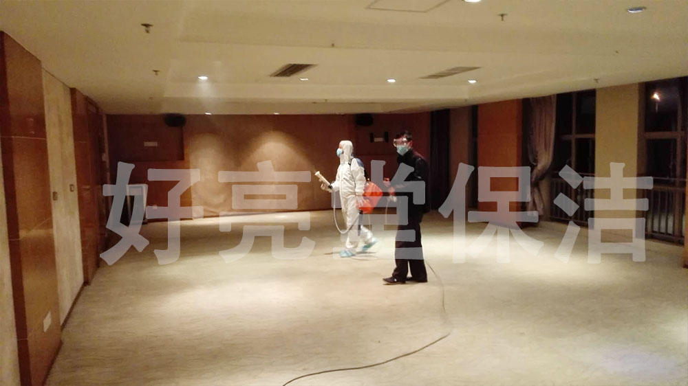 【好亮堂】在高爾夫酒店進行殺菌消毒作業,公共區域,為防止病毒遺留和傳播,一定要定期進行室內的殺菌消毒作業,防止細菌滋生和傳播。