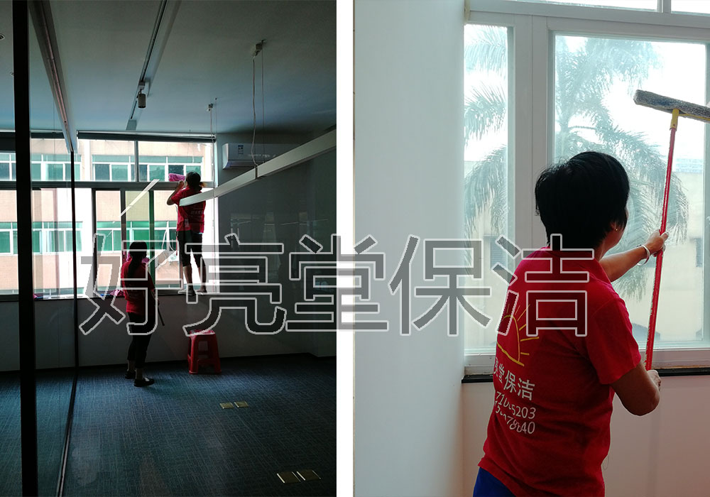 海珠景業(yè)工業(yè)區(qū):辦公室開(kāi)荒,玻璃內(nèi)外4層,且要求窗框翻新,清潔難度較高。