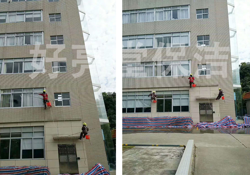 專業外墻清洗公司服務,本著以質量為主、安全第一、客戶至上的原則,采用高空吊板、蜘蛛人等形式進行高空作業。