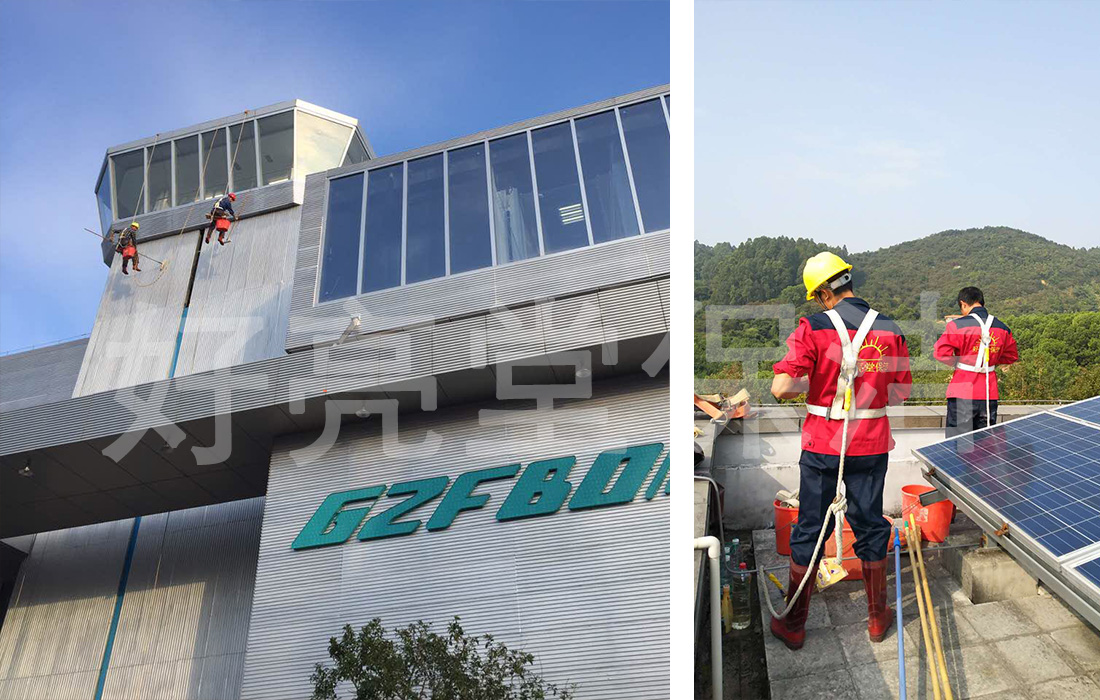 好亮堂外墻清洗施工隊伍,具有多年外墻清洗服務經驗,均持有高空作業證件,以安全、細致、高效、潔凈的服務著稱。現代社會大量的物業如大廈、小區、寫字樓、學校、辦公樓、工廠、醫院等外墻使用日久,會造成污質斑班,需要專業的清潔公司和技術人員對其進行清洗保養,使外墻保持光潔如新,延長物業的使用壽命。